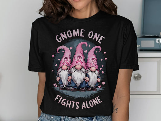Breast Cancer Gnome One Fights Alone Graphic Gnome Design T-Shirt