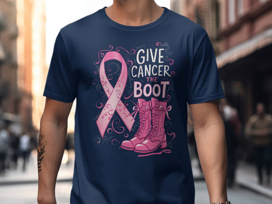 Breast Cancer Empowering Give Cancer the Boot Graphic T-Shirt