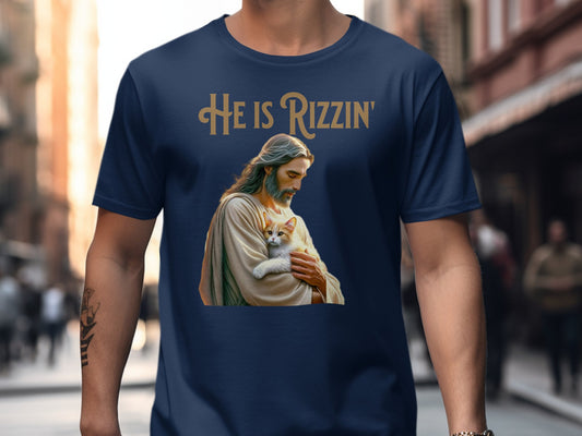 Jesus He is Rizzin Relaxing with Cat T-Shirt