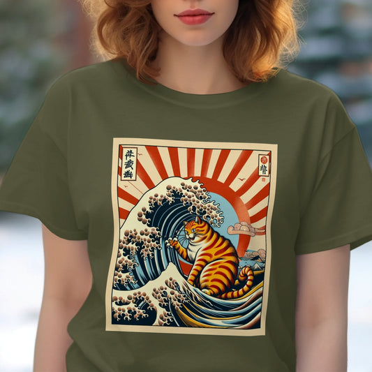 Retro Catzilla Japanese Great Wave Cat T-Shirt