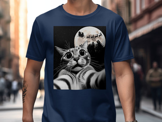 Santa Cat Selfie Christmas Themed T-Shirt