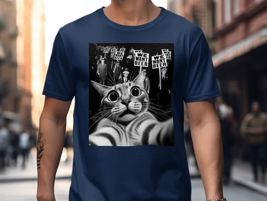 Cat Selfie WE WANT BEER Graphic T-Shirt
