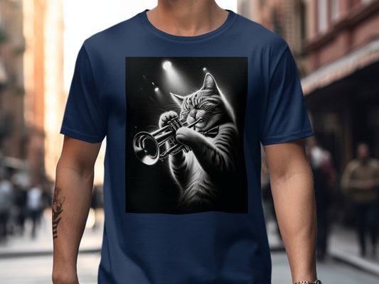 Cool Cat Playing Trumpet Graphic T-Shirt