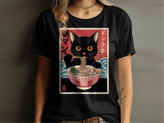 Ramen Cat Enjoying Ramen Graphic T-Shirt