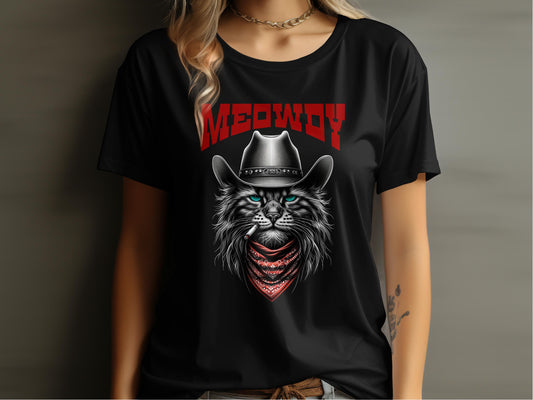 Western Style Meowdy Cat in Cowboy Hat T-Shirt
