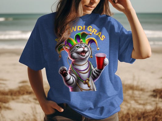 Crazy Cats - Funny Cat in Mardi Gras Costume Graphic T-Shirt