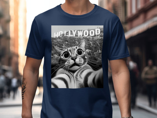 Funny Cat Selfie with Hollywood Sign T-Shirt