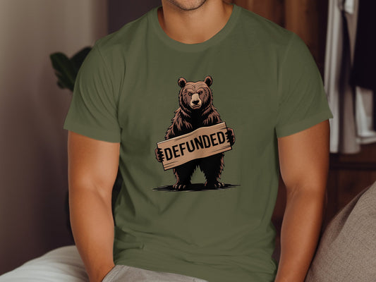 Cool Bear Holding Defunded Sign Graphic T-Shirt