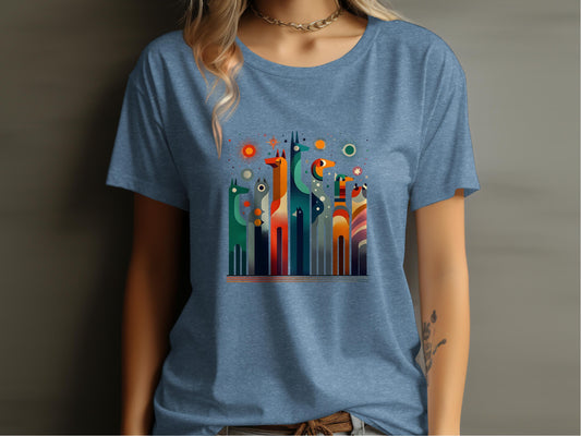 Colorful Mid-Century Modern Long Neck Cats T-Shirts