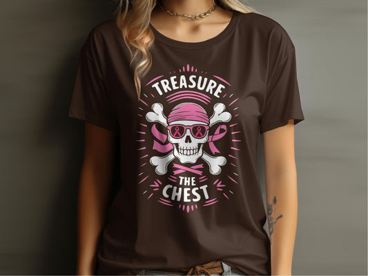 Breast Cancer Pirate Skull Treasure The Chest T-Shirt