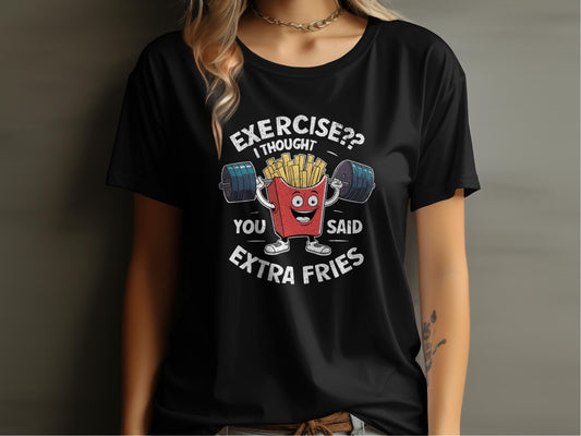 Extra Fries Funny Workout Cartoon Graphic T-Shirt